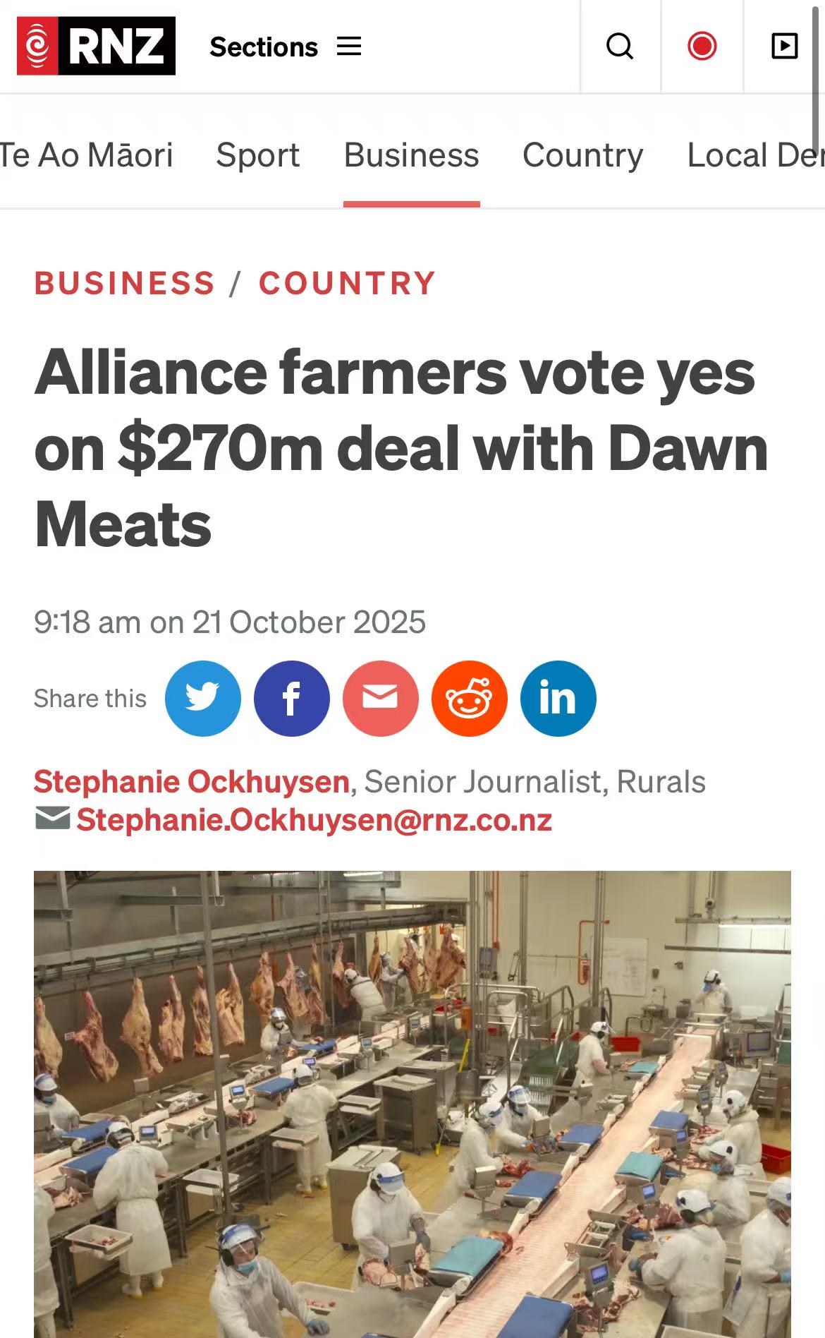 在超过2600名农户股东以87%高票通过后,Dawn Meats斥资2.7亿新西兰元收购Alliance集团65%股权,原股东保留35%。此次投票覆盖88%以上股份,标志着这家新西兰最大羊肉加工出口商正式易主。