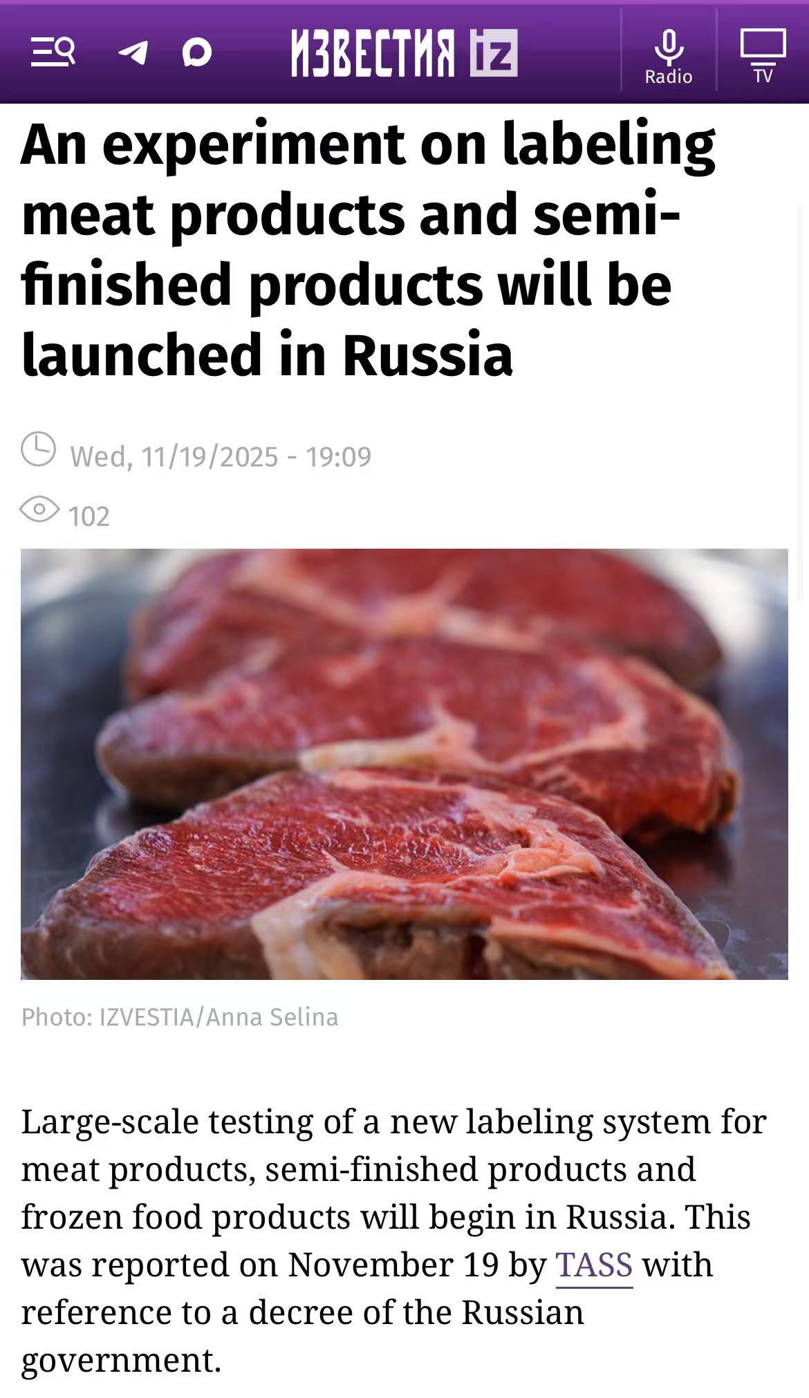 俄罗斯将于2025年11月24日至2026年8月31日期间,对肉类及部分冷冻食品启动数字标签大规模测试。此次实验依据俄政府最新法令推行,覆盖范围包括肉类制品、半成品、禽类胴体,以及冷冻鱼类、蔬菜、水果等预包装产品。