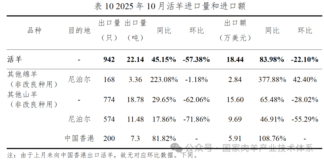 下面对2025年10月中国羊肉及活羊的进出口的情况进行总结。