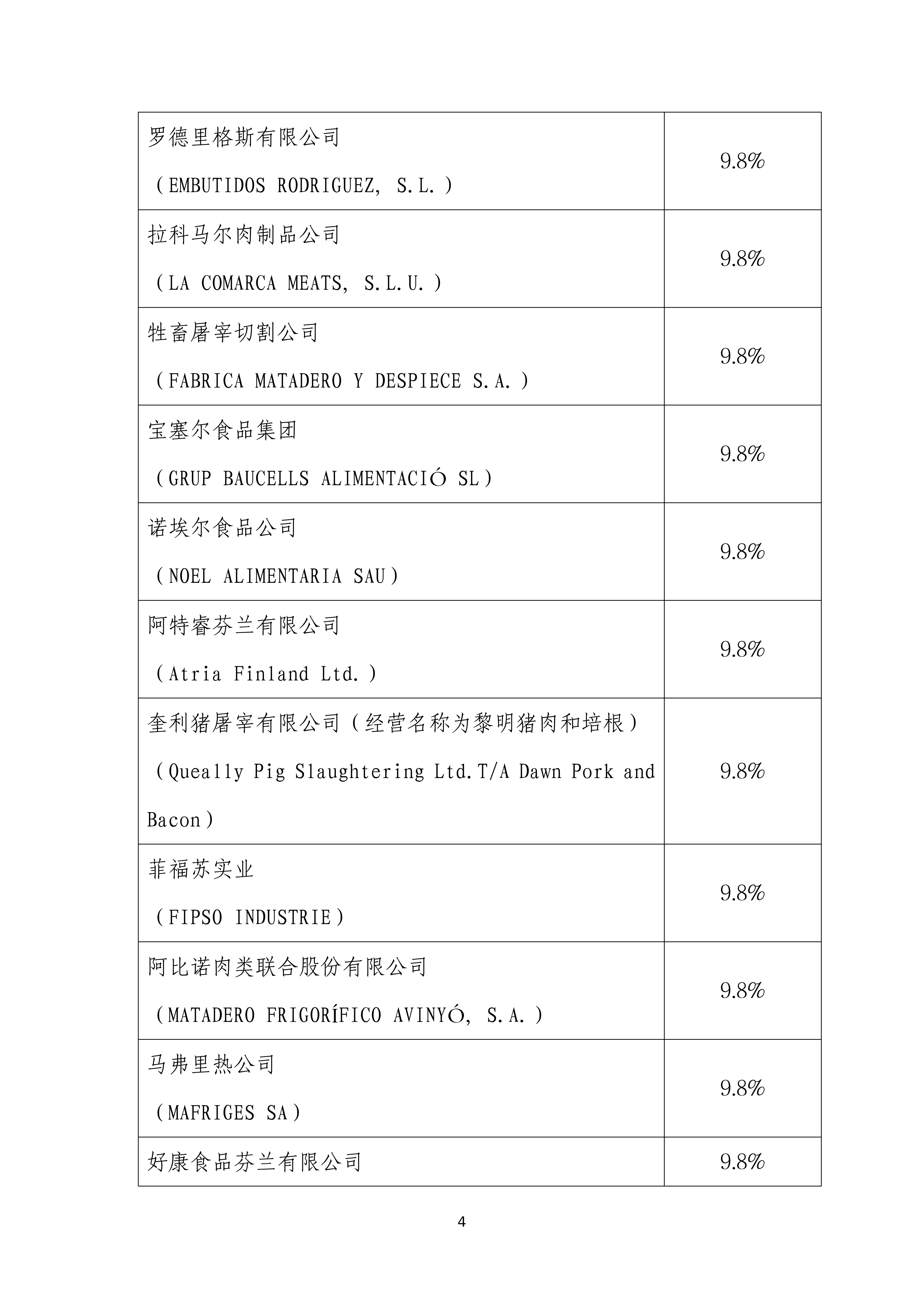 附件1:关于原产于欧盟的进口相关猪肉及猪副产品反倾销调查的最终裁定