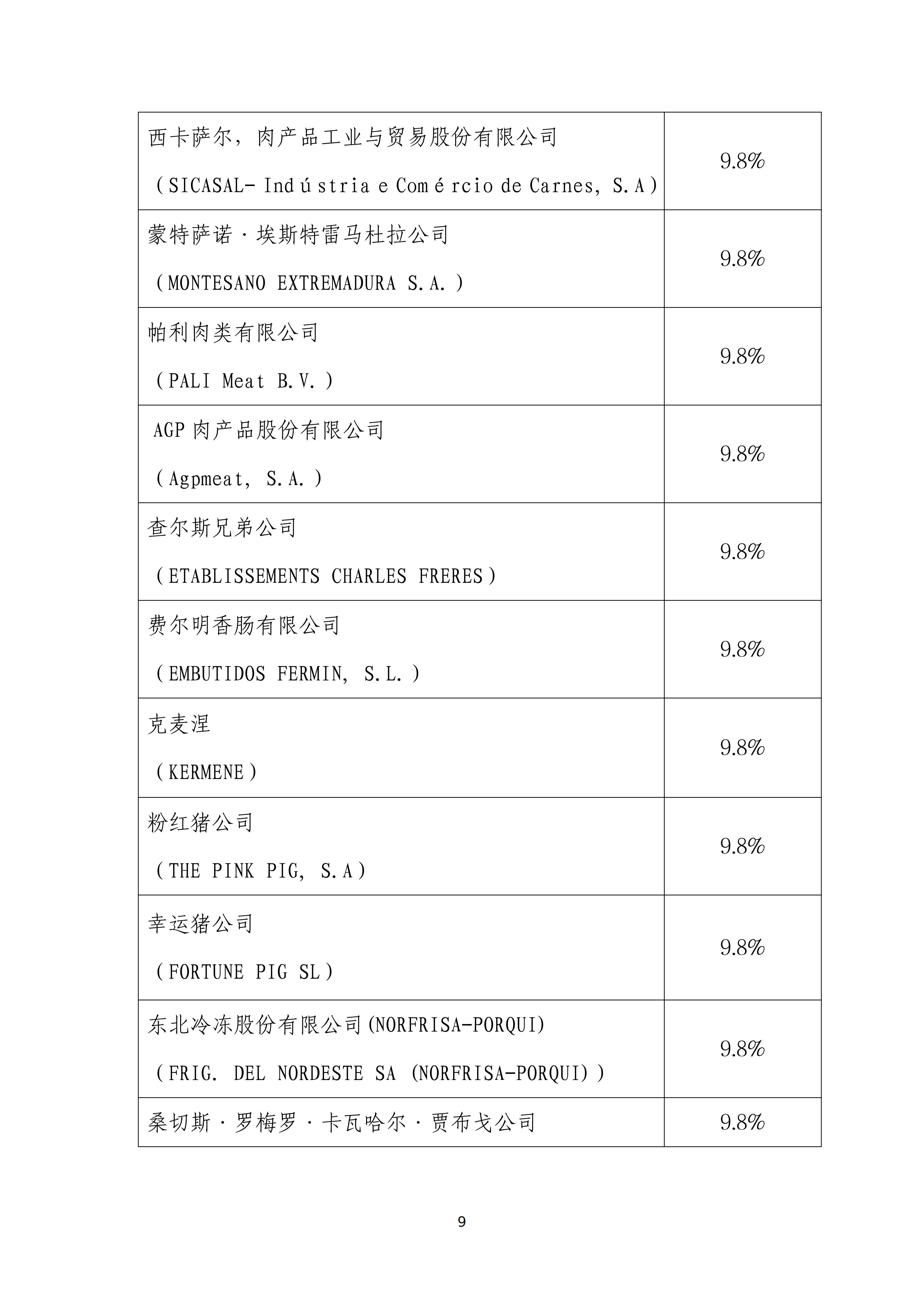 相关猪肉及猪副产品反倾销调查的最终裁定