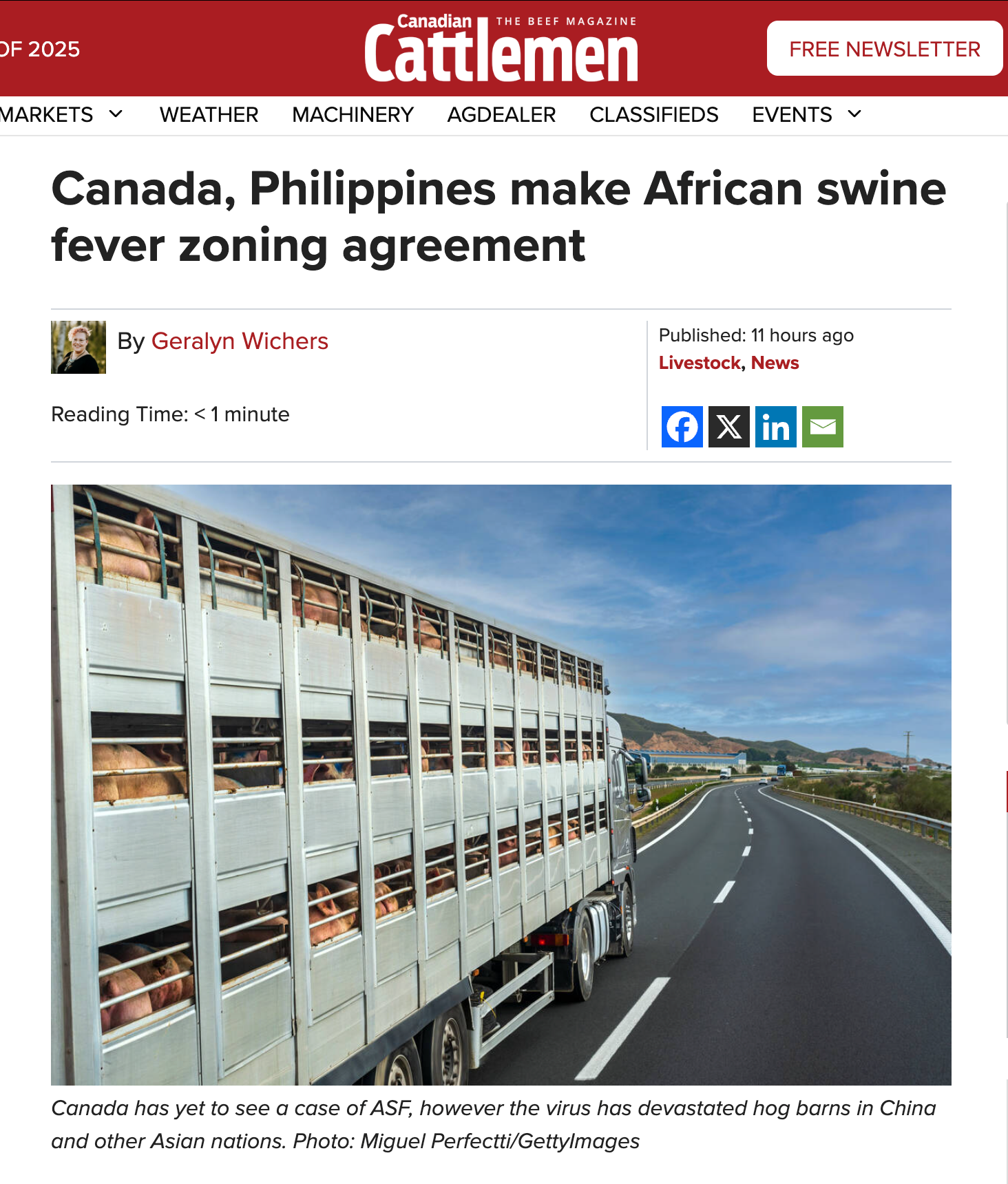 加拿大与菲律宾签署了非洲猪瘟(ASF)区域划分协议,旨在确保疫情暴发期间两国贸易可持续进行。