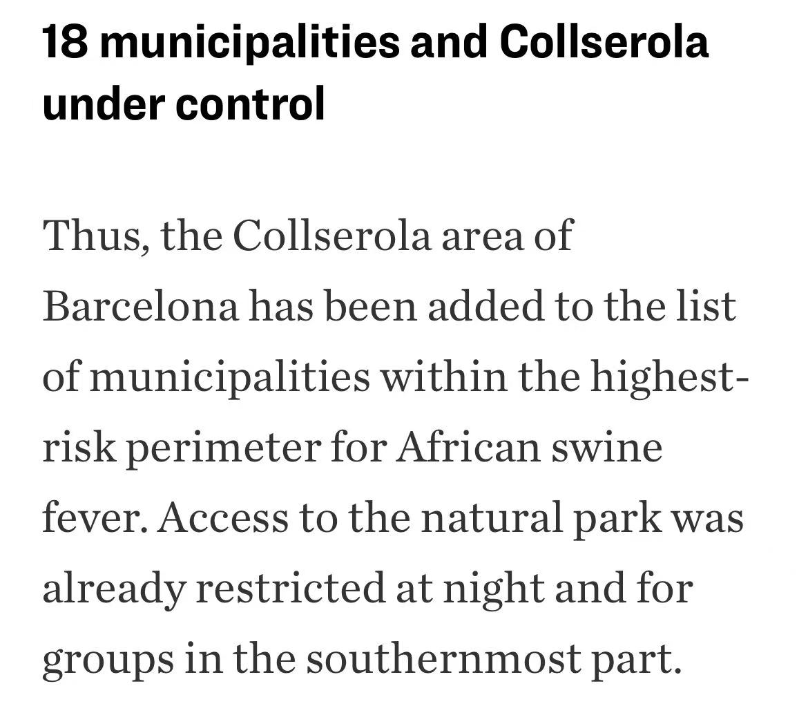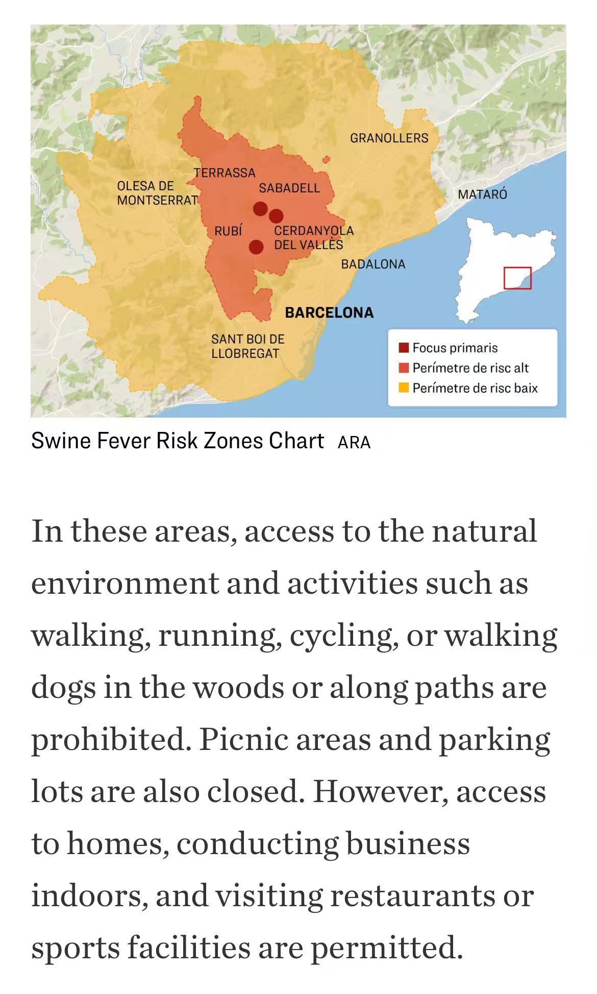 据外媒消息:非洲猪瘟已抵达巴塞罗那市区。