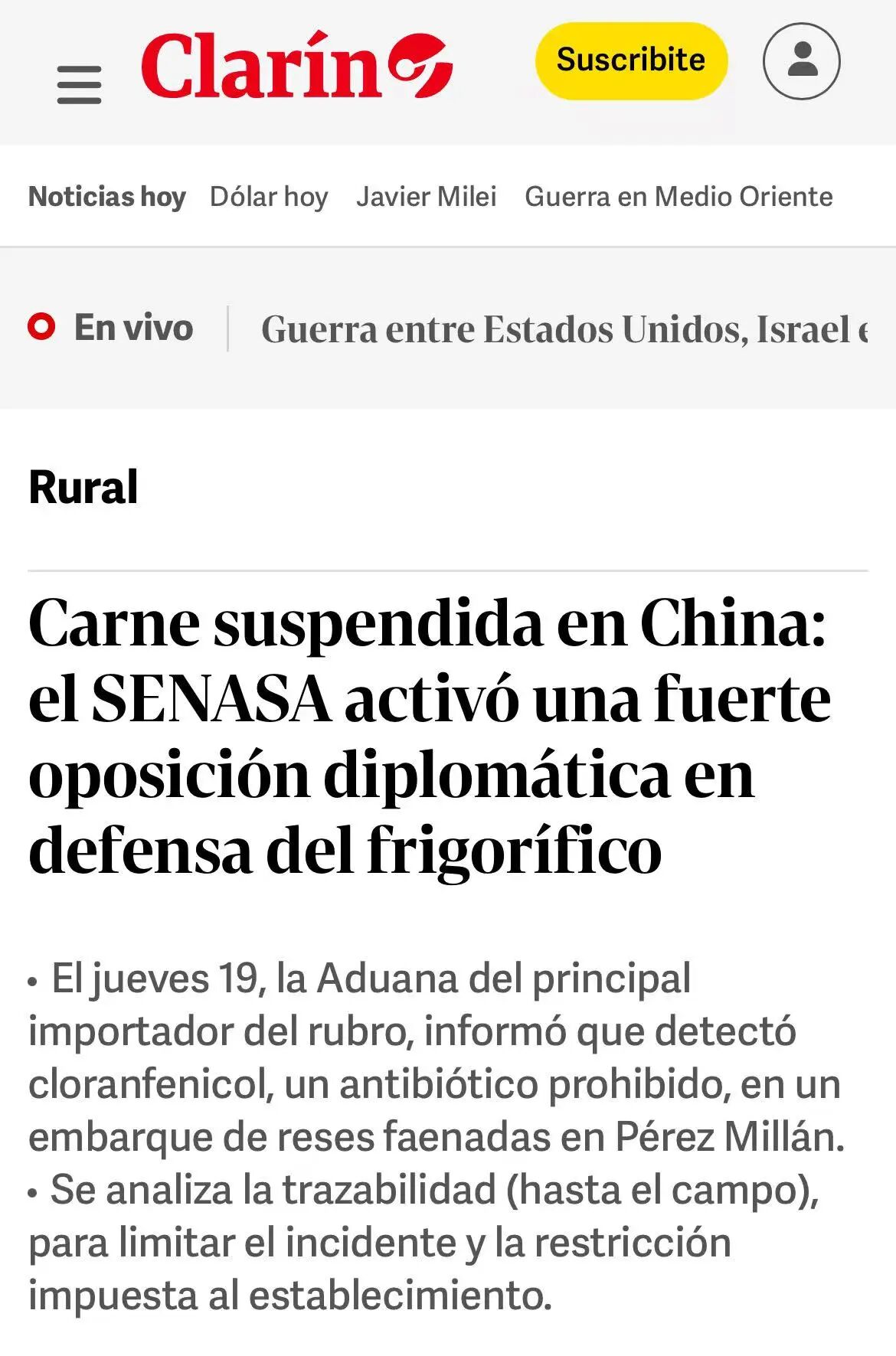 氯霉素是一种广谱抗生素,自1995年起阿根廷已禁止用于食用动物养殖。目前,阿根廷国家农业食品质量卫生局(SENASA)已联合外交部、农业部启动调查,并与中方进行信息核对,以查明残留原因。